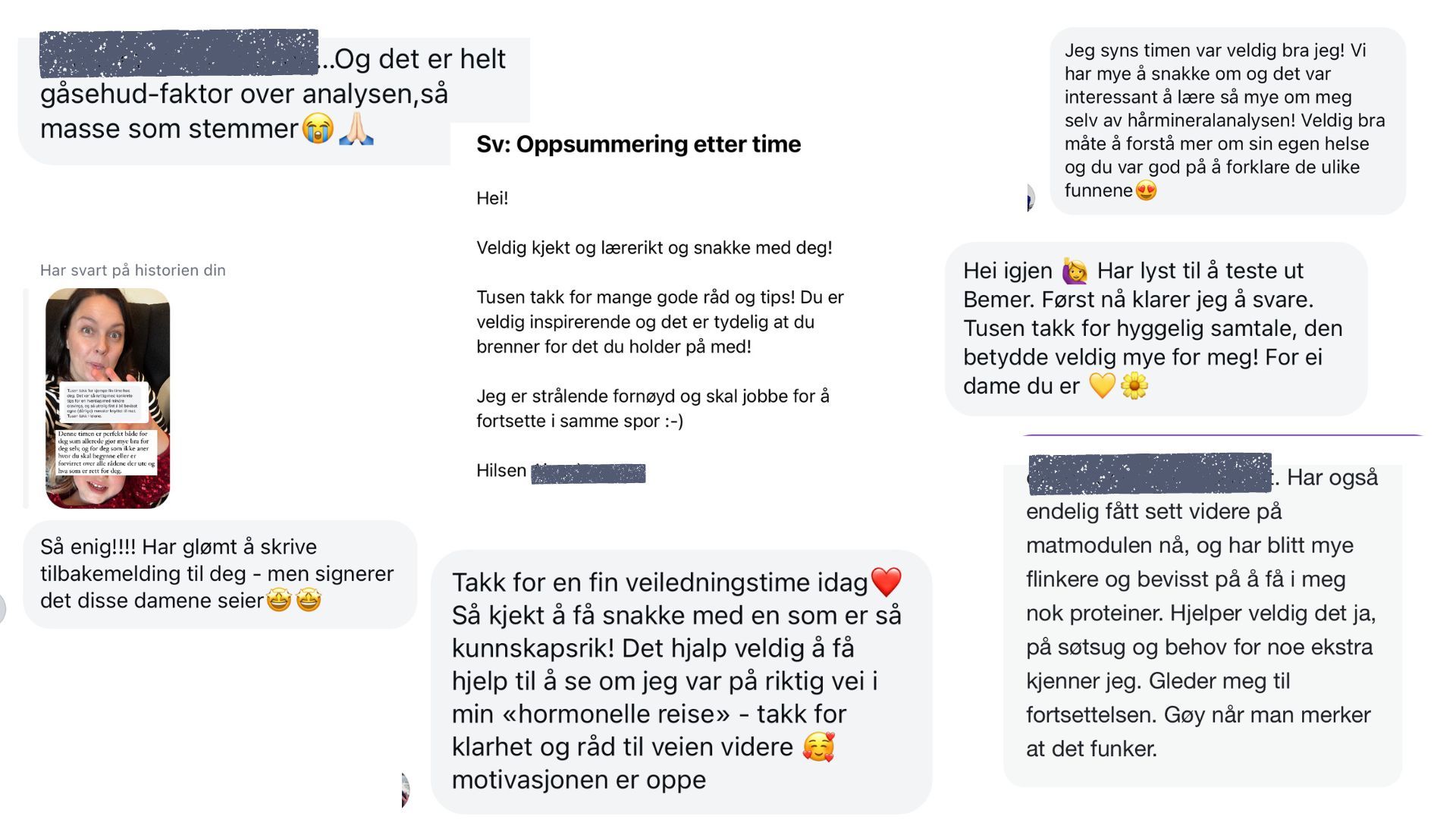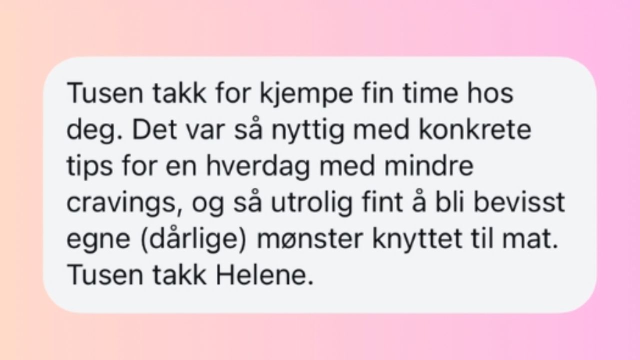 Samtalene kan brukes til å jobbe med søtsug og cravings, måltidsrytme, optimalt næringsinntak, blodsukker, stress, fordøyelse, hormonbalanse eller andre faktorer som er relevant for deg og din helse.